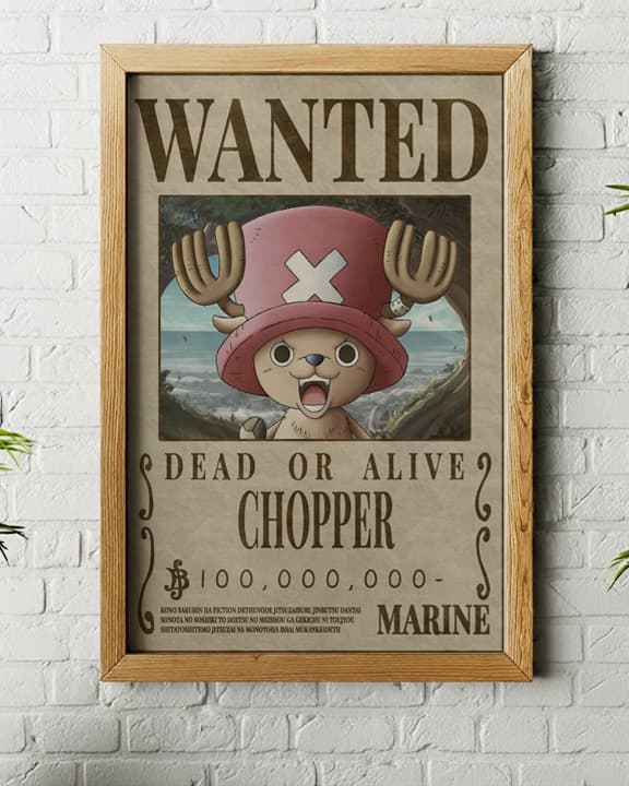 This is a "Wanted" bounty poster featuring the character Tony Tony Chopper from the anime and manga series One Piece.