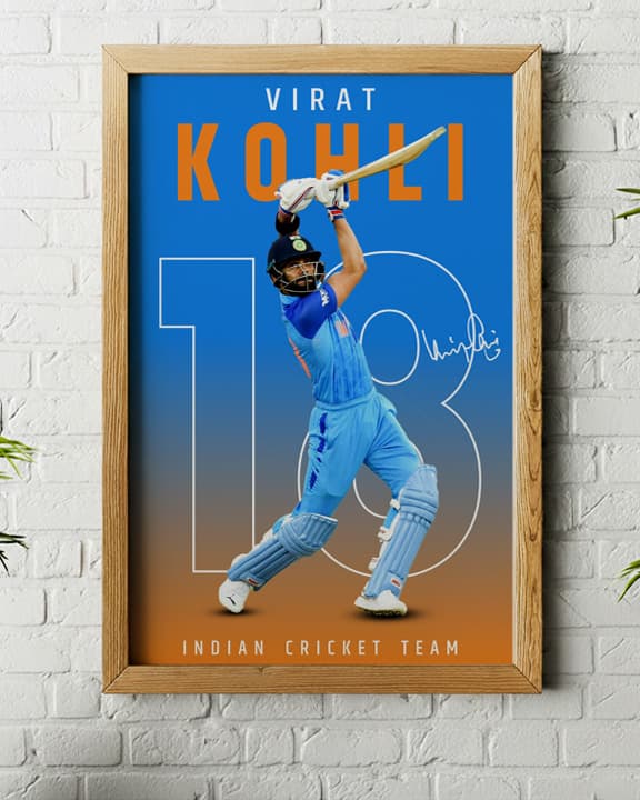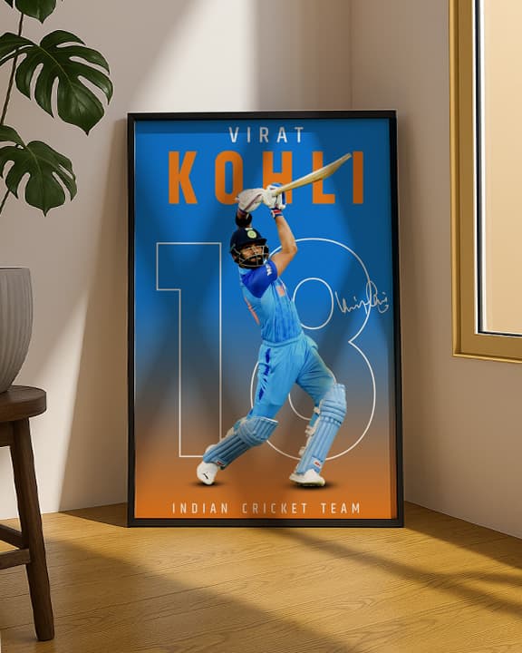 Inspired by the passion and determination of Virat Kohli, this premium wall poster is designed for true cricket lovers. A perfect blend of motivation and style, it adds a bold, inspiring touch to any space.